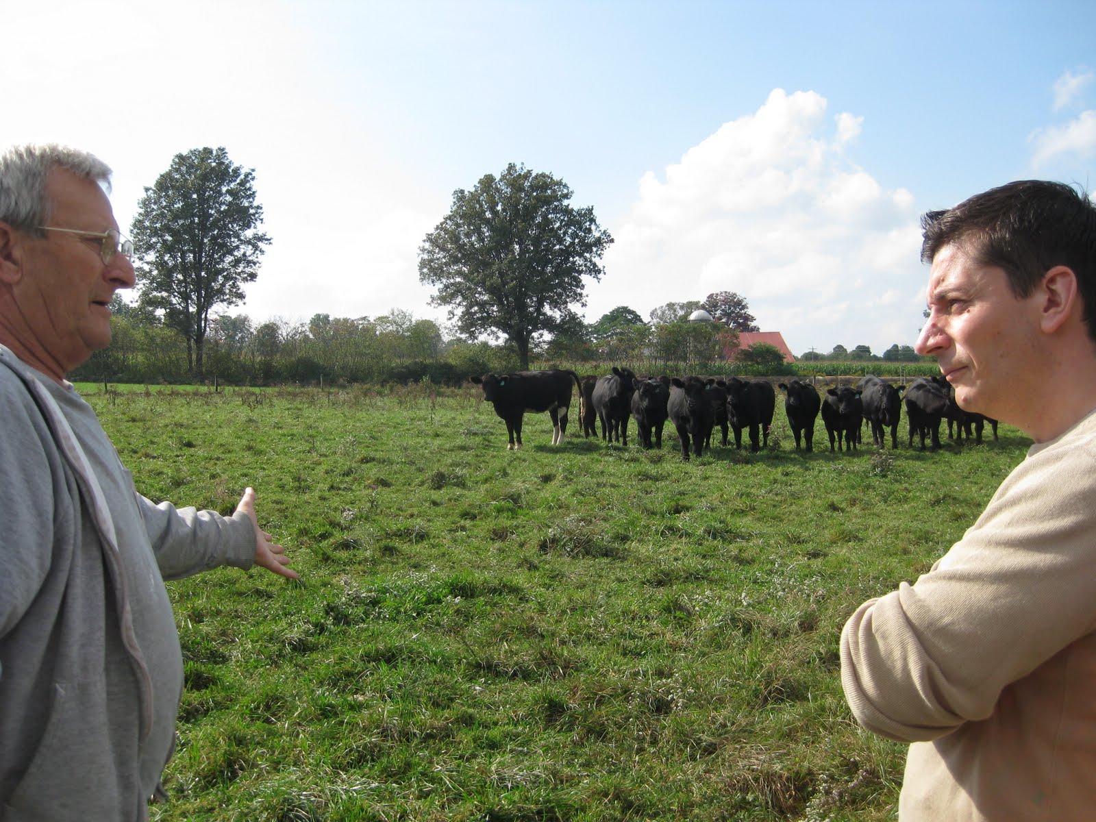 Bob and I talked about cows, beef, farming in the area, cattle rotation for best grass use and much more. Bob is very proud of his cows. I learned many things about the grass fed industry. Things like, dairy farmers selling their day old Jersey/Holstein dairy calves that have been fed milk replacer, and then they are put to pasture and hay for two years. In this period of time and because these cattle don’t have as much muscle mass as the beef cattle, they only weigh around seven hundred and fifty pounds. The quality of the beef is poor and at best only good for hamburger.