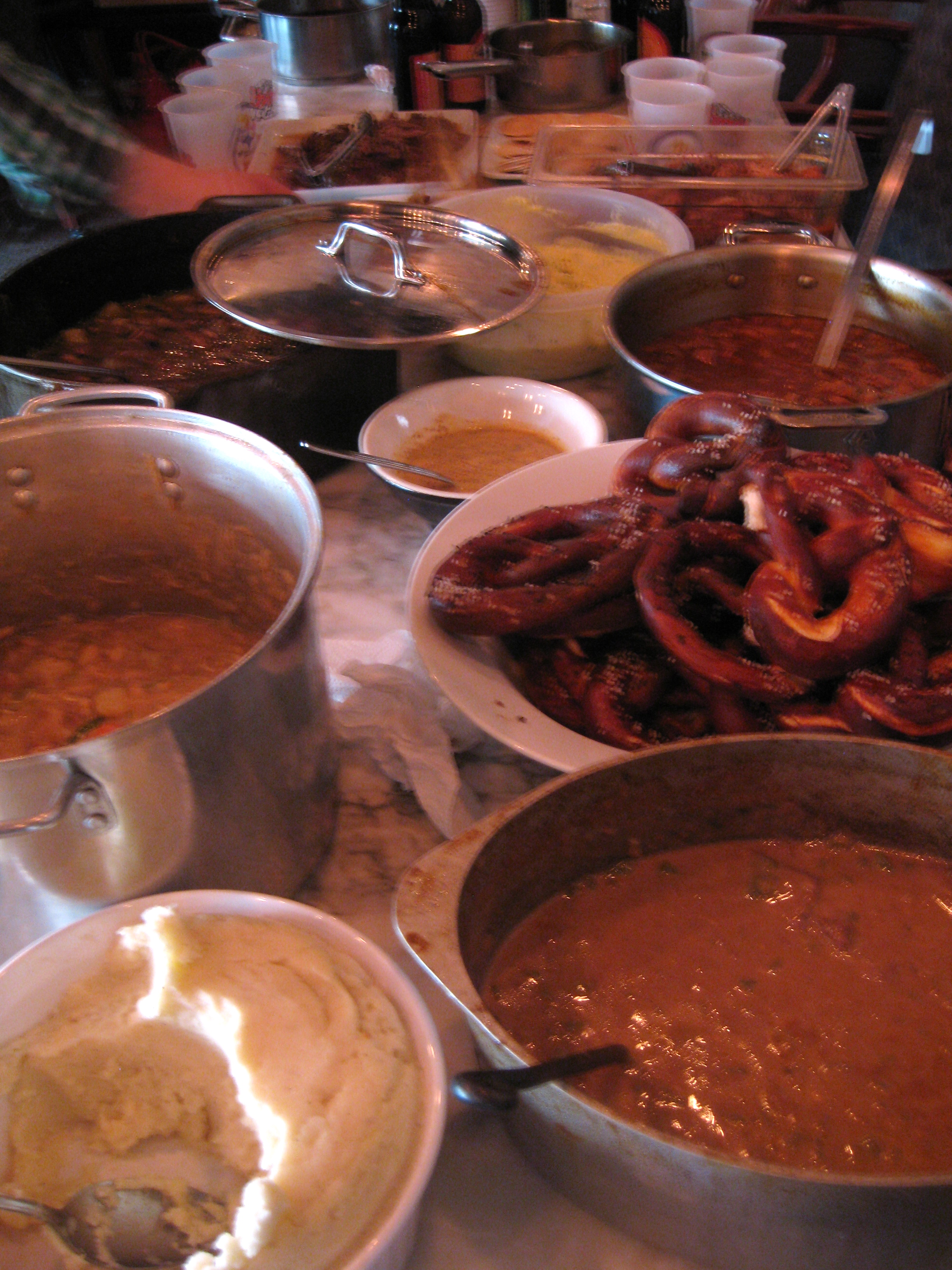 “Car-bomb sundae” – what a great idea. And the pretzels on the table look amazing!